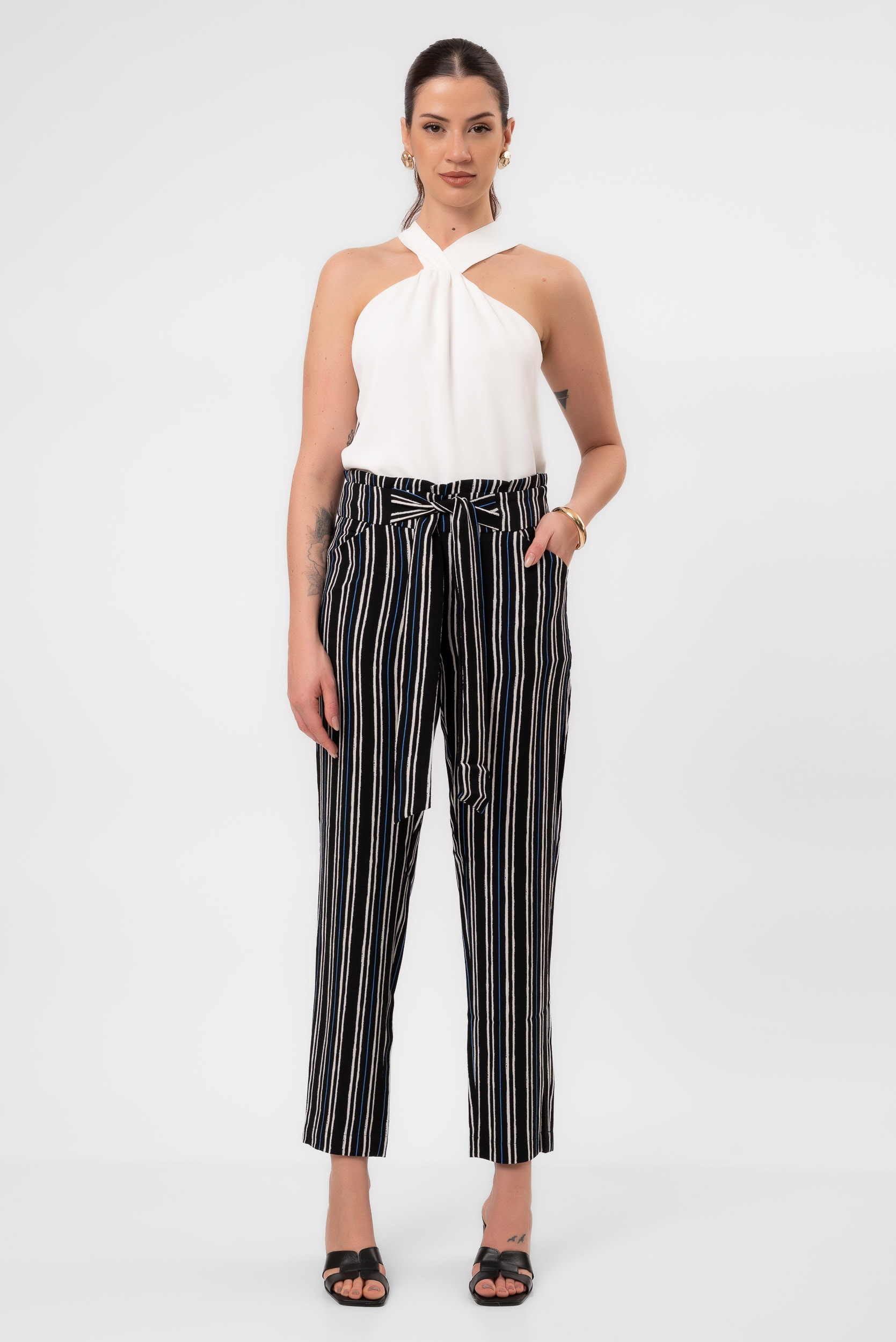 Composto por poliéster e elastano, a Calça Clochard Mary possui modelagem calça clochard, ampla no quadril com cintura alta, afunilando levemente na barra, estampada por toda calça, com bolsos frontais, além de uma faixa para amarração, feita com o mesmo tecido.