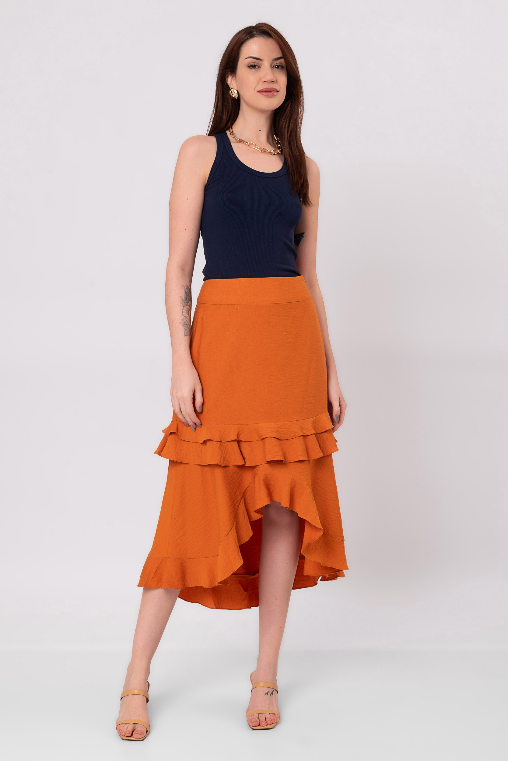 A Saia Midi Elisabeth é confeccionada em viscose, com modelagem midi de caimento leve e fluído ao corpo. Com babados em camadas que são ponto alto da peça traz charme e estilo a sua produção. Fechamento em zíper lateral. Beleza e delicadeza para suas produções.