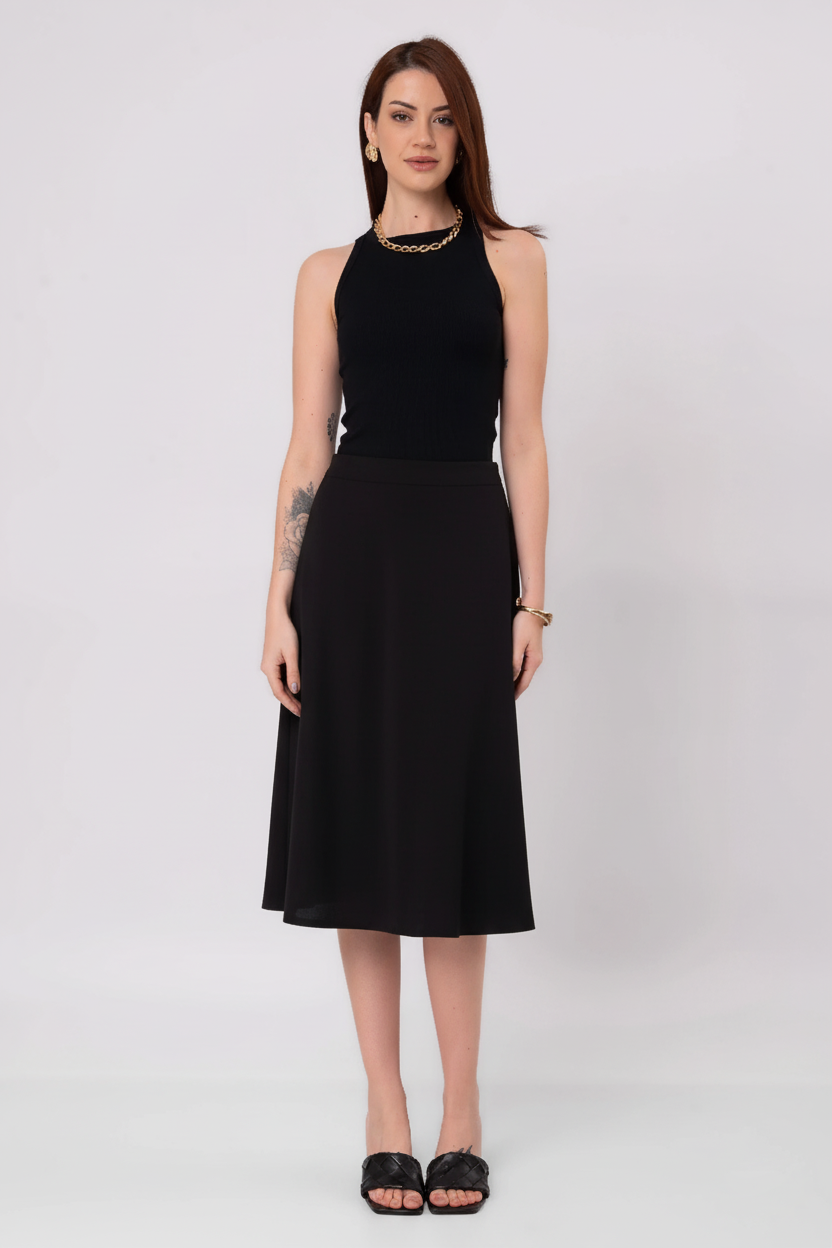 A Saia Feminina Midi Londres Verde Floresta é confeccionada em tecido crepe, com a modelagem midi e básica. A peça possui um movimento e zíper lateral.